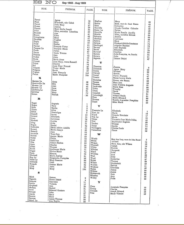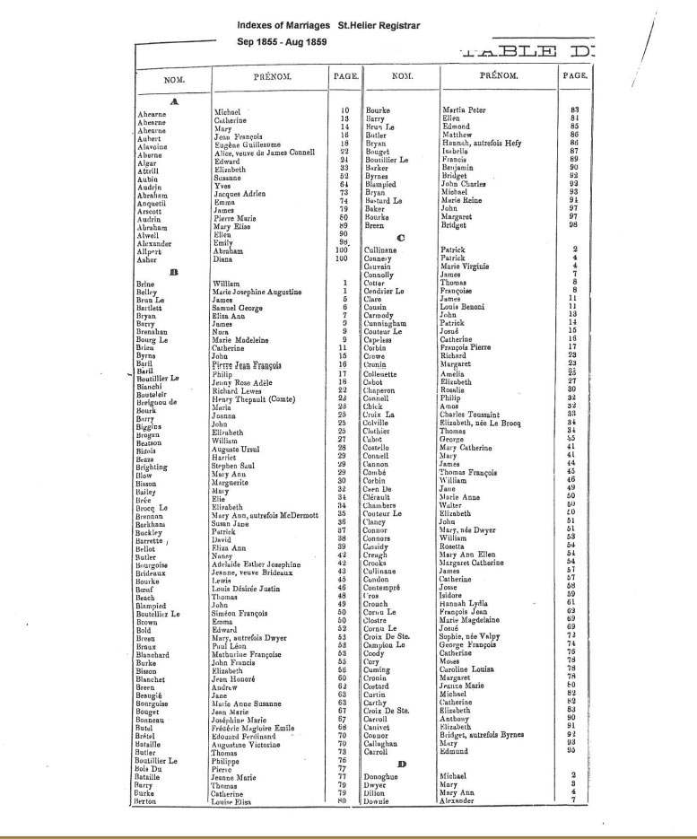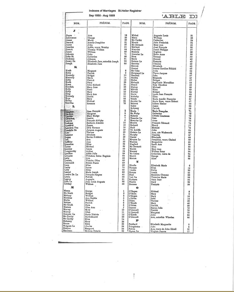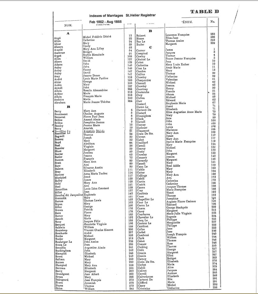 St Helier non-Anglican marriages indexes 1852-1859