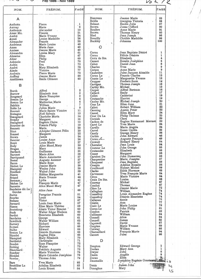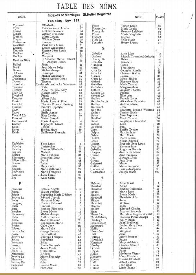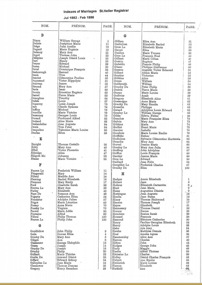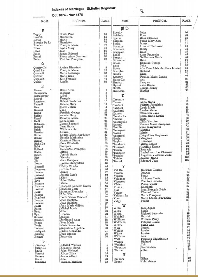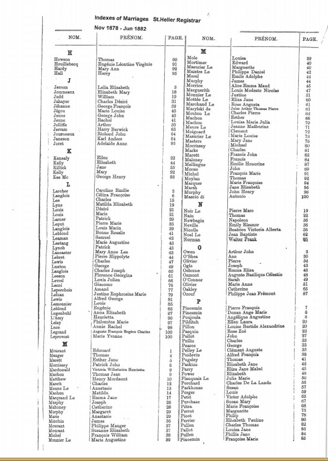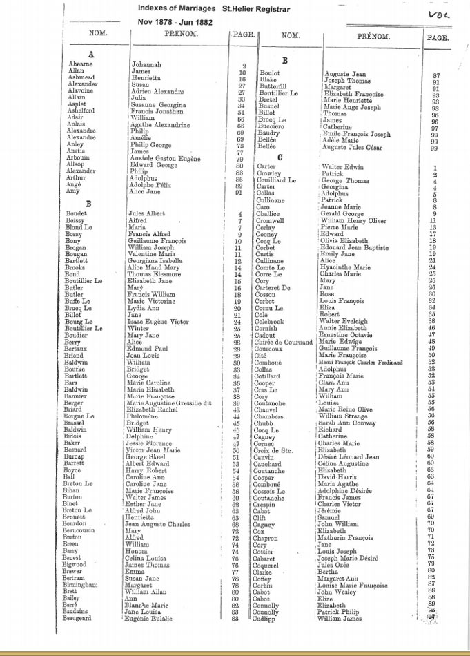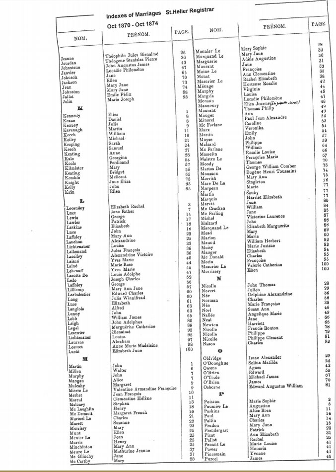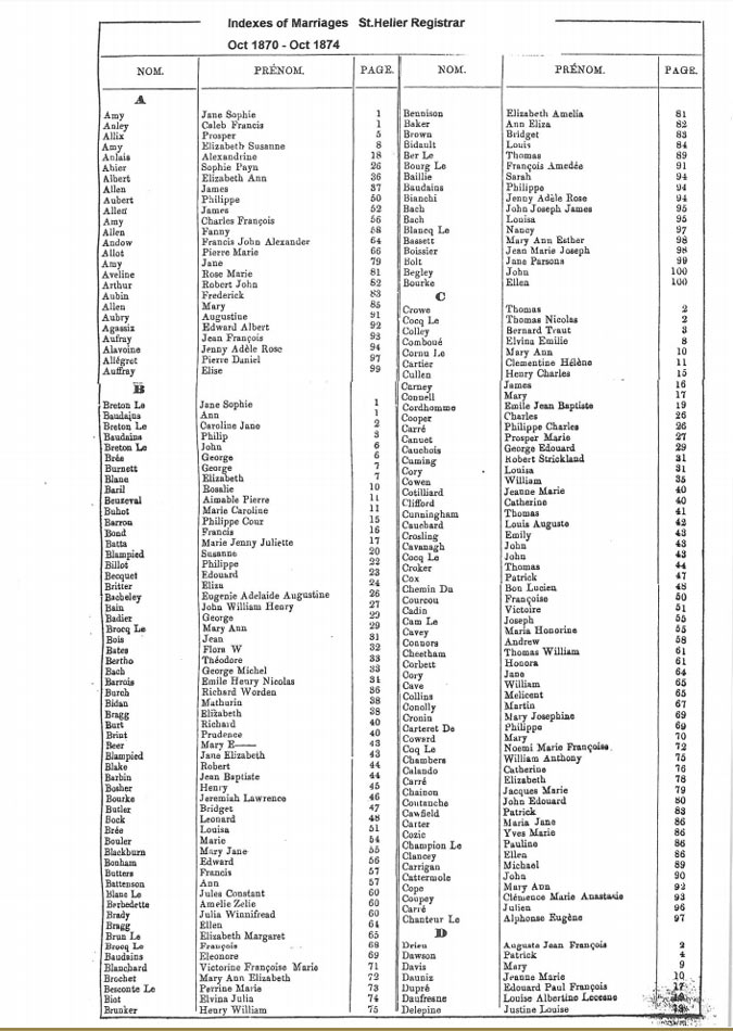 St Helier non-Anglican marriages indexes 1870-1889