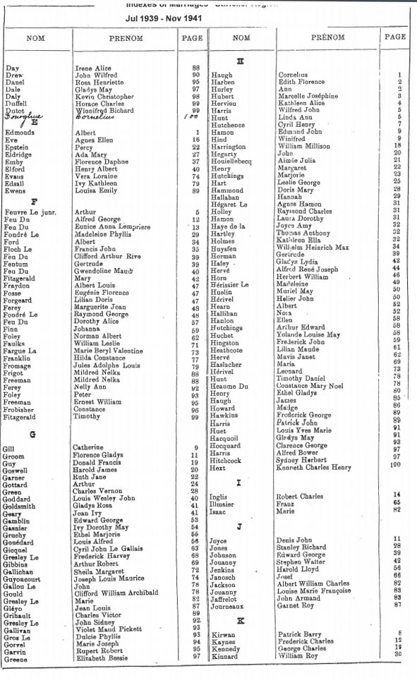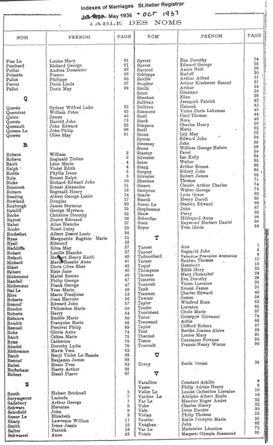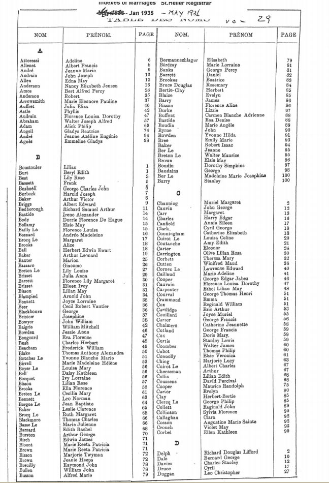 St Helier non-Anglican marriages indexes 1935-1946