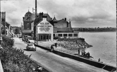 This is the Hotel Angleterre in Carteret. The hotel overhangs the edge of the harbour and this picture was taken before 1922, when it was acquired by Jean Noel Le Saint's family from a company named Le Jersey Francais, which explains why it was flying a Jersey flag. Jean Noel wrote to us to say that Mrs Kathleen Le Sueur, born in St Helier in 1894, used to travel to stay at the hotel, as would many islanders have done. But she was an annual visitor, and became very much a part of the Le Saint family, taking care of Jean Noel and his sister on the beach and bringing them a new toy every year. In 1951, when the family had nowhere to live in Paris, they stayed a year with her in her apartment in Asnieres. The Le Sueurs sold all their properties in Jersey after the Great War to move to Paris, where her mother and father died. She died in Carteret in 1977. Jean Noel would love to know about the circumstances which caused the family to leave Jersey. Please contact us at editorial@jerripedia.org if you can help in any way