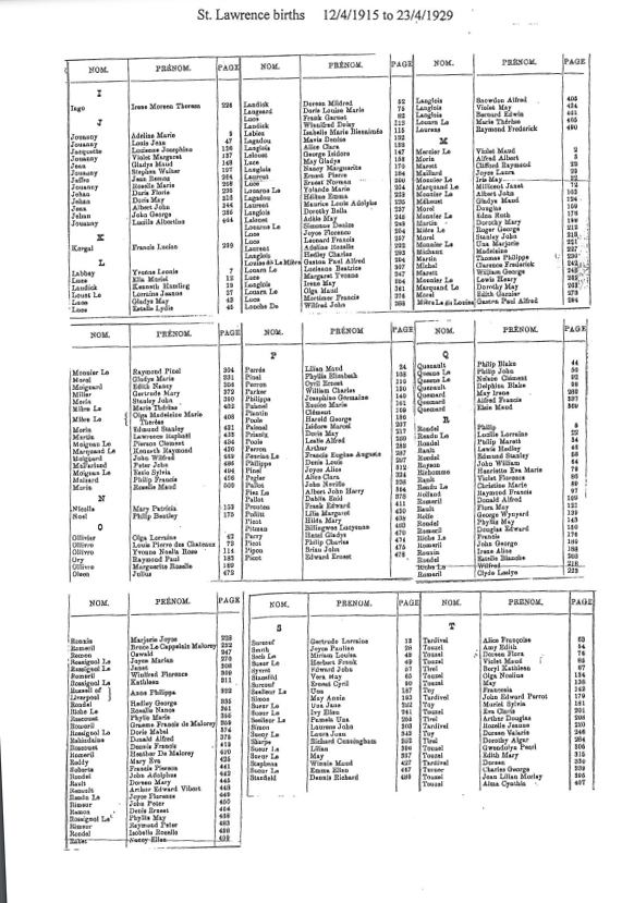 St Lawrence birth record indexes 1903-1985