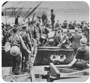 Troops being evacuated in St Malo in June 1940. Although many were expected to be taken to Jersey, they were eventually all shipped direct to England