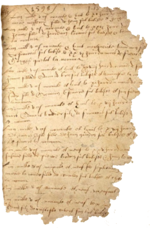 A tattered page in an early St Martin baptism register