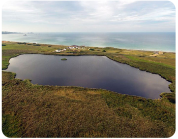 The total reserve is some 48 hectares in area and contains open water, reed beds, fen, wet meadows, dune grasslands, rank grassland and scrub land. The first known record of the pond dates back to 1309 at which time it was used to stock fish for the Seigneur. Up until 1939 the pond was still used this way with the surrounding land used for hunting. The reed-bed was well cropped and used for thatching and bedding purposes and at this time it was possible to access the water’s edge in most places.