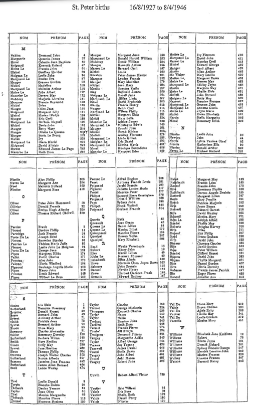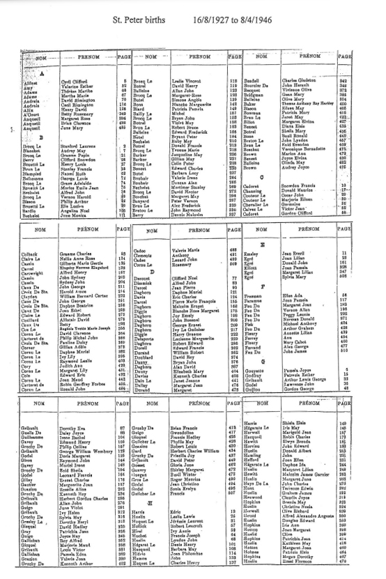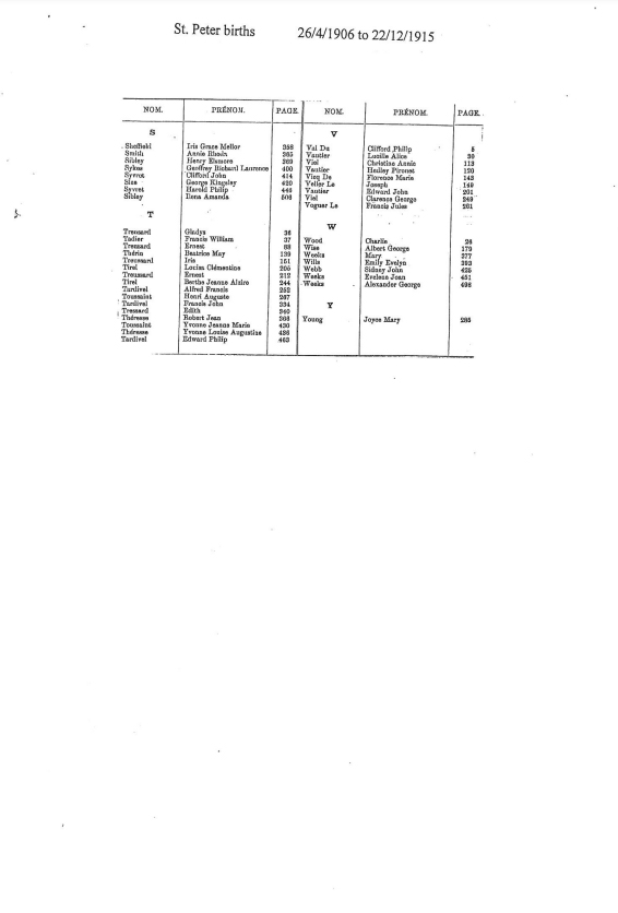 St Peter birth registrations from 1842 to 1915 are included in our database of church and civil records. We have now added this page of images of the indexes to the registrations up to 1975. These records will eventually be digitised and added to our database, but are presented here as images of the pages in the Registrar's index.