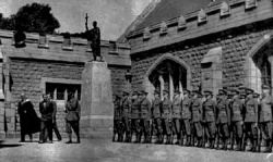 A life-size statue of Sir Galahad stands on a granite plinth in the quadrangle of Victoria College as a memory to former pupils who lost their lives in the two World Wars.