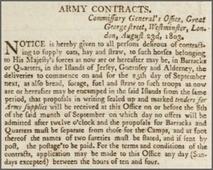 Preparations to defend the island against any possible French invasion continued and the Commanding Officer of Artillery advertised the requirement for horses and drivers for 12 field guns. Tenders were invited for the provision of 12 sets of three horses and a driver, to be ready at all times within 20 yards of the Park of Artillery. To encourage their involvement, horse drivers would be freed from any Militia duty.