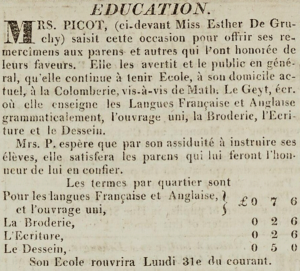 Jeanne Elizabeth de Grosvalet was arrested by the Constable of St Helier, suspected of circulating forged banknotes. She tried to pass a fake Bank of England note of £2 sterling and was taken to prison. She was found guilty and banished from the island for three years.