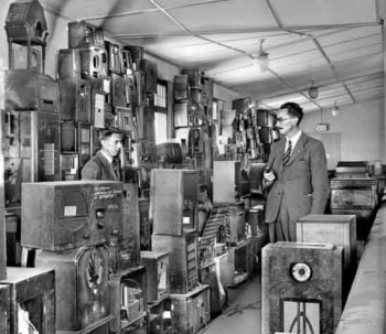 Radios confiscated during the Occupation remained in store until after the Liberation. This Evening Post photograph shows chief reporter Charlie Perry, who was always photographed pipe in hand