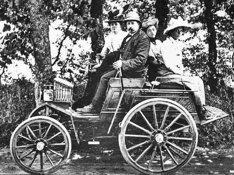 This car was built in Jersey in 1901 by George Pool, owner of Pool's Garage in Don Street. He is pictured on an outing with his wife and son, also George