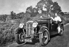 Everard Le Breton in his 'bull-nose' Morris in 1933
