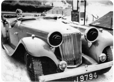 This 2.5 litre Standard Swallow (Jaguar) is pictured parked in the bus stop opposite St Brelade's Bay Hotel, in the summer of 1940. The driver is a member of the Luftwaffe Reconnisance Squadron based at Jersey Airport. The car was registered in 1937.