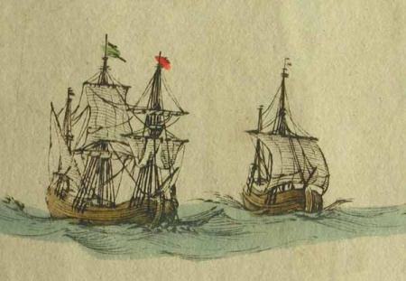 Twice they were icebound. The second time the ice piled up higher than the mainyard, and they abandoned ship, and were dragging their longboats over gthe ice hoping to find open water, whensuddenly the ice split, and they were able to haul the ships out.