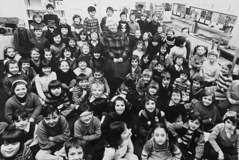 Val Plaisant and Vauxhall infants at St Thomas' Church in 1981