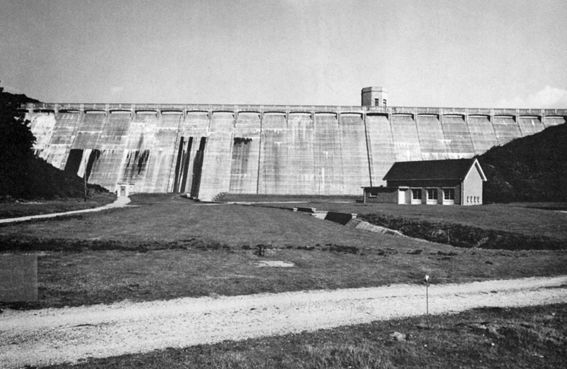 The dam nears completion in 1961