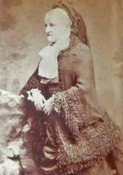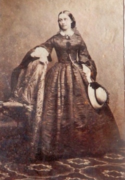 She was Eliza Gordon Macalister who was born in Glenbarr, Kintyre, Scotland, in 1836. The photograph below of her wearing the same dress, is in an album kept by her brother's family at Glenbarr. She went to Jersey in the 1850s to join her mother and stepfather, who were living there, met and married Charles Vaudin, a physician. The photograph was probably taken at about the time they married in 1860. Charles and Eliza are in one of our Vaudin family trees
