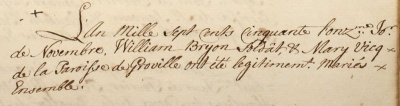 Mary Vicq married soldier William Byron in St Martin in 1750