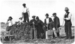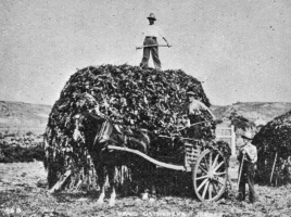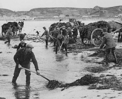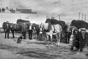 The main use of vraic is for spreading over potato fields during the winter. It is then ploughed into the soil before the potatoes are planted in late winter and spring. Vraic was traditionally gathered by horse and cart in Grouville Bay and St Ouen's Bay, and in smaller quantities at Le Hocq and Havre des Pas. The practice continues using tractors and trailers, although the quantity taken has diminished over the years.