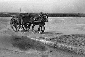 A solitary vraic cart in St Brelade's Bay in the late 19th century