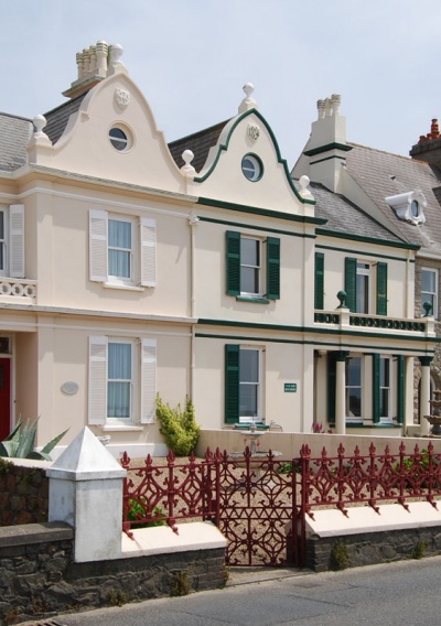 1895 seaside villa, with La Greve adjoining to the west. They have similar internal detailing and layout to two other pairs nearby to west: Beau Rivage and Playa d'Or and Riva Bella.