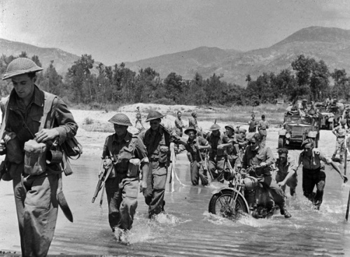 After victory in North Africa, Allied forces launched a seaborne and airborne invasion of Sicily in July 1943 and after capturing that island, pressed on to invade mainland Italy, precipitating the downfall of the country’s fascist dictator Benito Mussolini. It had been British Prime Minister Churchill’s hope that Italy would provide an easier route towards the German heartland than a cross-Channel invasion. Regrettably, any optimism was badly misplaced, with the subsequent Italian Campaign proving one of Britain’s most challenging and costly as the Allies laboured to cross rivers and climb mountains in the face of tenacious enemy resistance. From its commencement in 1943 to conclusion in May 1945, at least 38 Islanders died while serving in Italy or on its surrounding seas.