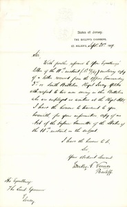 A clash between civil and military matters was not something the Lieut-Governor wished to become involved in, so he wrote to the Bailiff, William Venables Vernon, forwarding the letter and requesting to be informed 'what steps can be taken to avoid such hardship being brought on men who have to perform Militia service.'