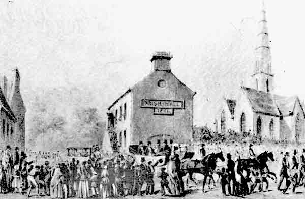 This magnificent picture, which was published in the Annual Bulletin of La Société Jersiaise in 1965 is captioned "Oct 9, 1850. The Ancient Chapel, also known as the Hotel de Ville, formerly in Don Street, used at various times for religious services, municipal and social gatherings." There is no reference to a Hotel de Ville, which is French for Town Hall, in any of the recent major histories of Jersey.