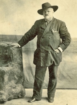 In 1897, when the photograph of him in the box on the right was taken, he wrote: 'Just dismounted from a young half-broken horse after a 50-mile ride, which acts to some extent for my dilapidated appearance.'
